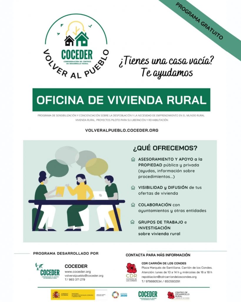 En el Centro de Desarrollo Rural de Carrión de los Condes hemos puesto en marcha una Oficina de Vivienda Rural a través de la cual te daremos apoyo y asesoramiento en materia de vivienda de manera gratuita.