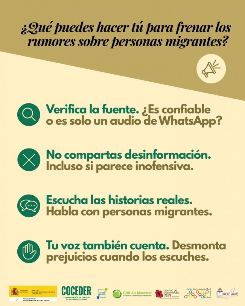 El programa ‘Ciudadanía Inclusiva: combatiendo el racismo y la xenofobia en el medio rural’, de ámbito estatal, está financiado por el Ministerio de Derechos Sociales Consumo y Agenda 2030 dentro de los programas de interés social, con cargo a la asignación tributaria del 0,7 % del IRPF X Solidaria , y desarrollado por Coceder y los Centros de Desarrollo Rural CDR Alt Maestrat, CDR Carrión de los Condes, Centre Desenvolupament Rural – CDR la Safor , CDR El Sequillo y Asociación Alzheimer Bierzo .