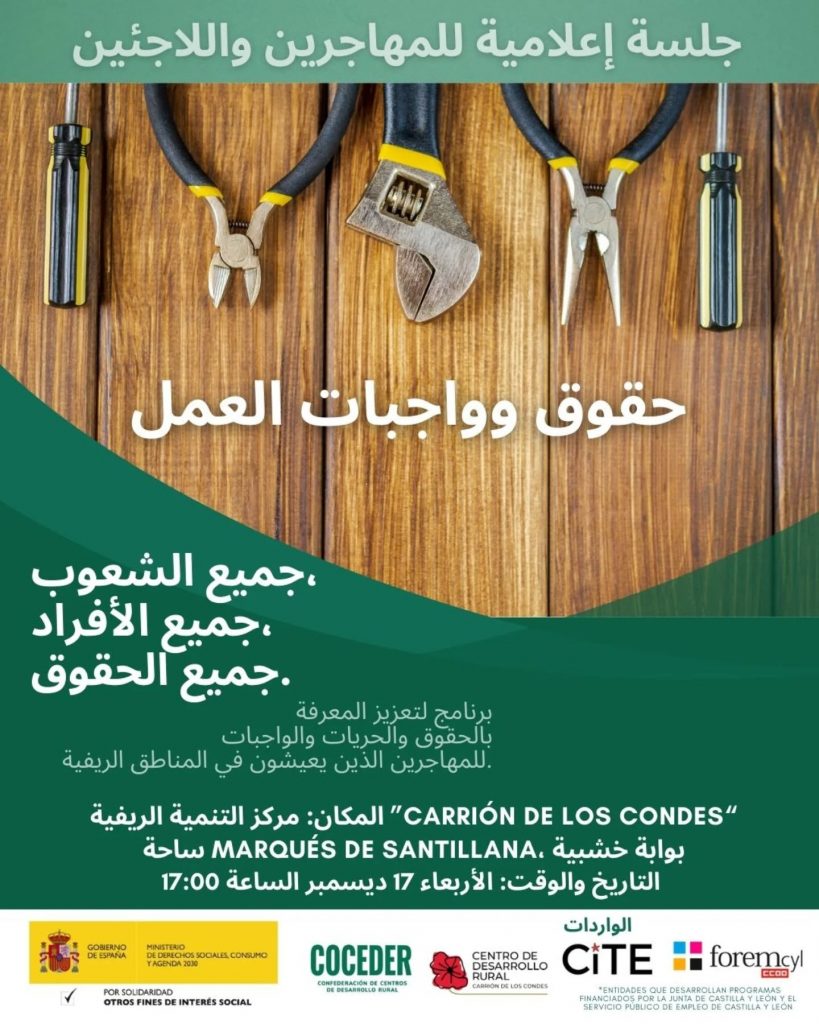 جلسة للتعرّف على حقوقك في العمل، وطرح الأسئلة، والحصول على معلومات واضحة ومفيدة تساعدك على التعامل مع سوق العمل في المناطق الريفية.