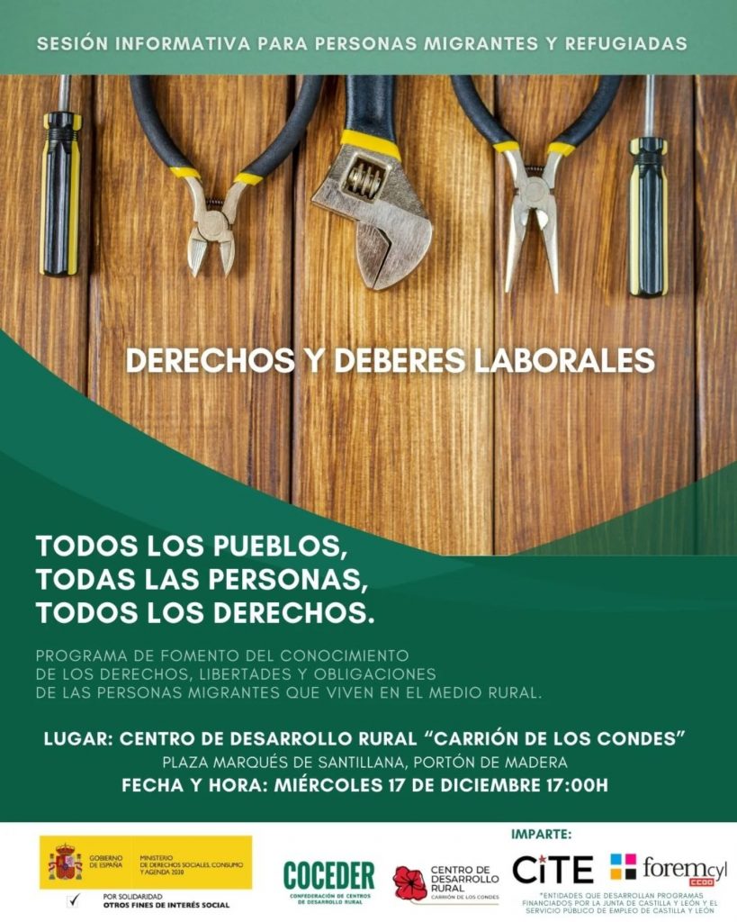 Una sesión, que impartirá Migraciones CCOOCyL y Foremcyl, para que conozcas cuáles son tus derechos al acceder a un empleo, resuelvas dudas y cuentes con información clara y útil para desenvolverte en el ámbito laboral en el medio rural.